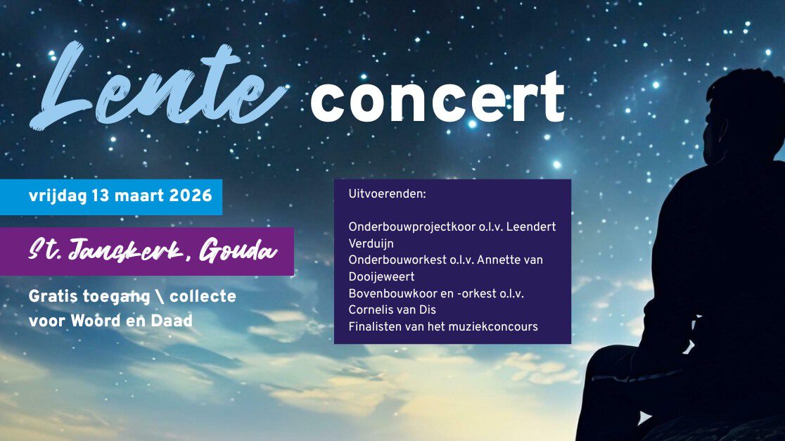 Op vrijdagavond 13 maart verzorgen de leerlingen uit de onderbouw en bovenbouw van havo en vwo een lenteconcert in de Sint-Jan in Gouda. Op het programma staat muziek van onder andere Mozart, Vivaldi en diverse componisten uit de 21e eeuw. Veel van deze muziek staat in het kader van het thema Verwondering. Ook zullen de twee schoolorkesten optreden, waarbij in het onderbouworkest ook leerlingen uit het vmbo meespelen.